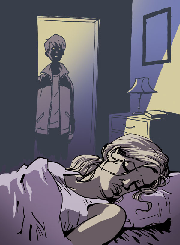 Another look at an illustration for the YA novel I wrote recently. I’ve experimented a bit with coloring the line art to seperate front- and background. Really like how this one turned out, romantic and creepy at the same time.