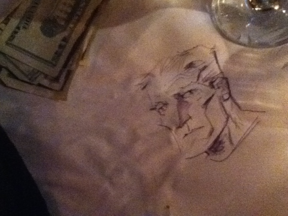 At night we got on a train into Manhattan for a premiere of a new web series called SuperTwins, where I met a few other artists and got some ideas for publishers I should talk to. We went for a late dinner at an Indian restaurant, where Dean left behind a sketch on the paper tablecloth. Some things are the same as at home, there’s always tons of scribbles left behind when Danish comics guys have been to a restaurant. It’s what we do.